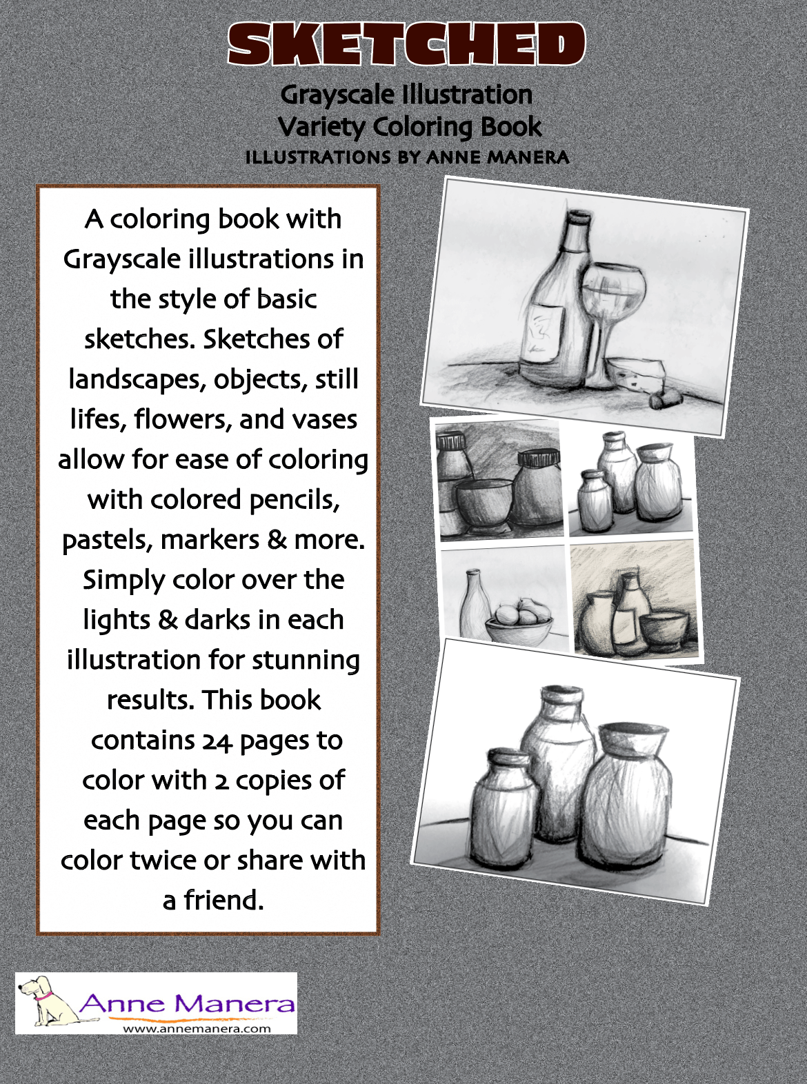 SKETCHED Grayscale Illustration Variety Coloring Book illustrations by Anne Manera