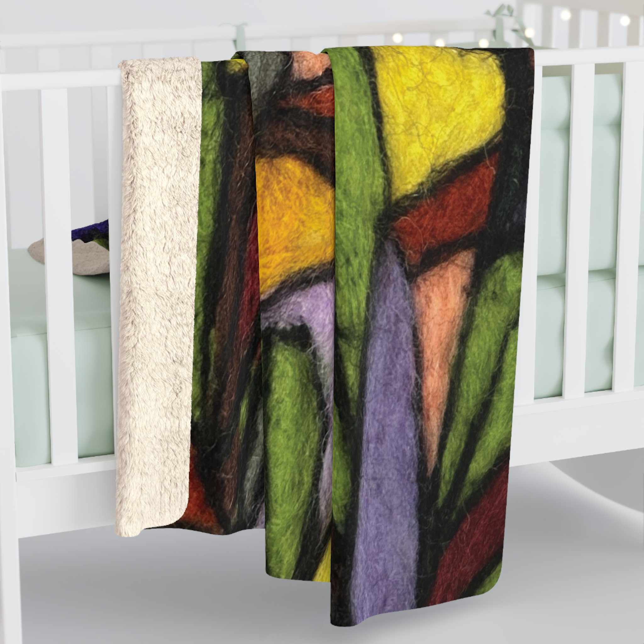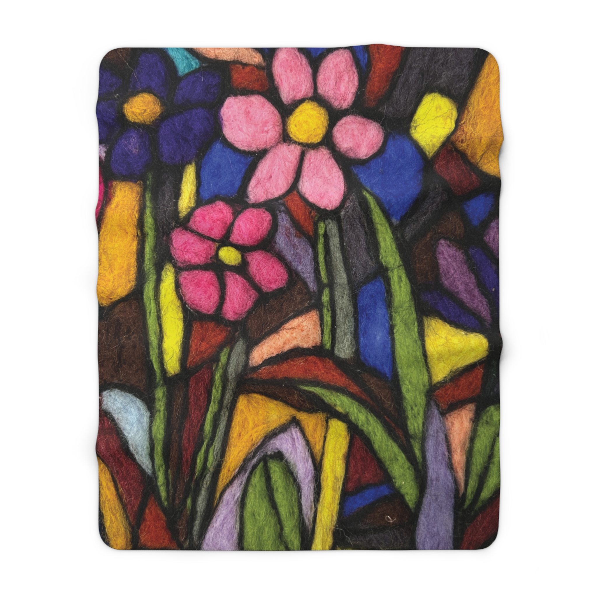 Vibrant Floral Sherpa Fleece Blanket Needle Felted Stained Glass Design by Anne Manera Cozy Home Decor, Gift for Her, Couch Throw, Boho Blanket, Seasonal Decor